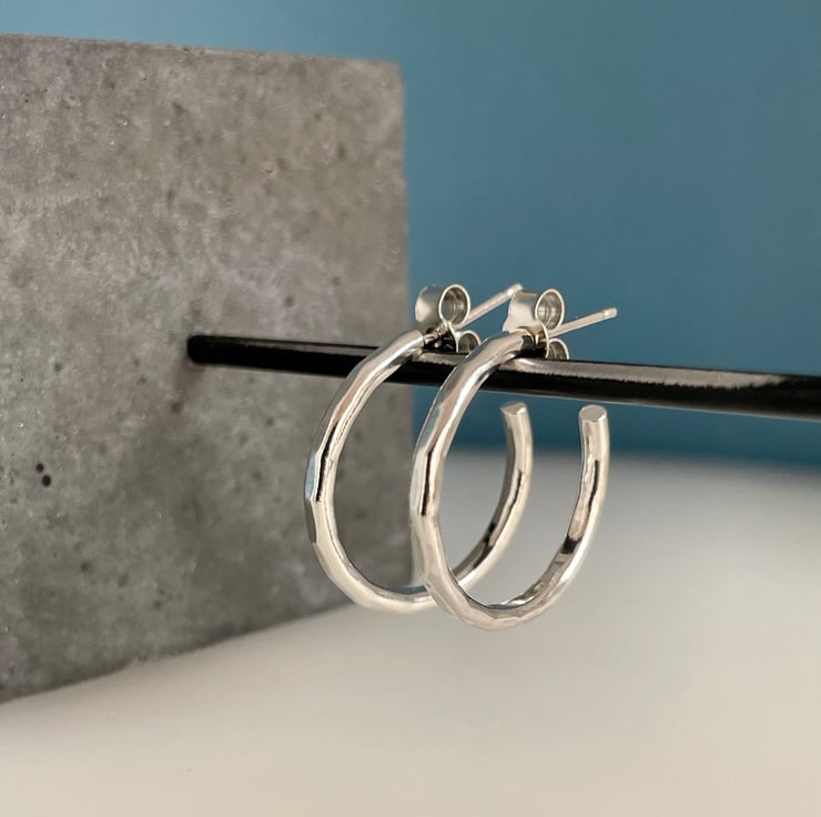 Product Item: Small hammered silver on sale hoop earrings